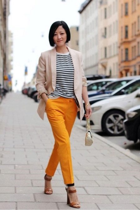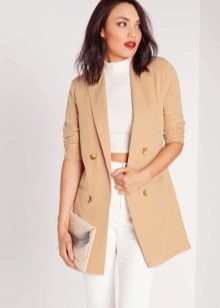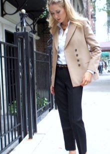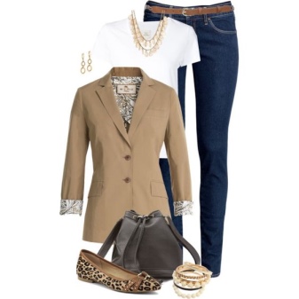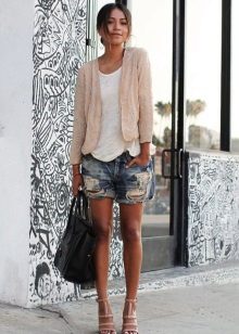 Put on a beige jacket with jeans and a T-shirt, and get a great look for every day. Replace the T-shirt with a shirt - and the business image for the office is ready. As in the case of shorts, shoes can be chosen in a sports style, on a flat sole or on a heel.