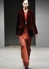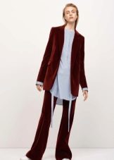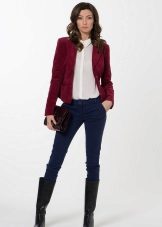 The material for sewing a burgundy jacket is used the most diverse. The most popular products are tweed, wool, knitwear, linen and cotton. Thin fabric models often have a lining. Festive burgundy jackets are made of silk, velvet and satin.