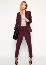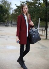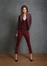 - One of the most successful combinations with a burgundy jacket will be a beige bottom. Any shade of this color looks elegant and festive with a burgundy, especially if beige is presented in an outfit in several tones.