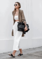 A combination of an elongated jacket made of thick suit fabric and a light, fluffy dress made of chiffon, batiste, lace or silk looks very gentle and romantic.
