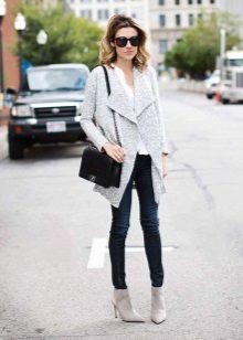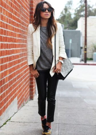 To create a casual look, a classic jacket is perfect for any jeans, leggings, skinny trousers, dresses, a-line or straight-cut skirts, etc. As the top, you can choose a shirt, shirt, top, turtleneck.