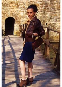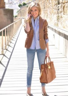 For every day you can opt for a brown sports jacket. It looks perfect with a simple cut t-shirt and jeans. Sneakers or sports shoes and, of course, a handbag can be matched to the tone of a jacket.