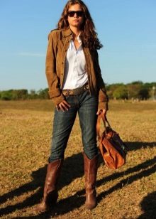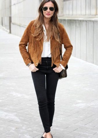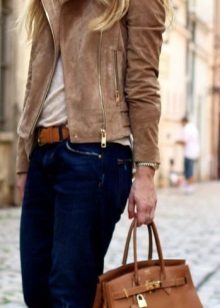 The jacket can be a straight or fitted cut. Any option looks stylish in tandem with jeans. The oversize model looks spectacular, which is better to use in contrast with other elements of the wardrobe. Many girls choose a brown jacket in a men's style. It harmonizes beautifully with jeans or trousers of a classic cut.