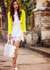 Dress. A short jacket is equally well combined with a tight, and with a fluffy dress. For a summer, thin dress, it is best to choose a jacket in white or light shade. The little black dress goes well with a jacket of any color, including the brightest and trendiest shades of pink, emerald, golden, etc. The more magnificent the dress, the simpler the style should have a jacket and vice versa - the tight-fitting dress is beautifully combined with the jacket of the original style, with a large number of decorative details, voluminous collar, etc.