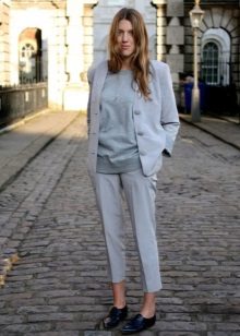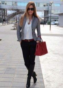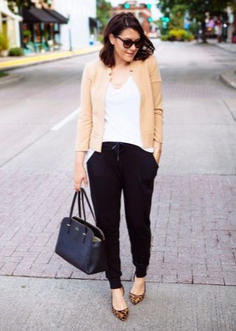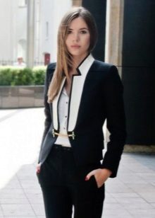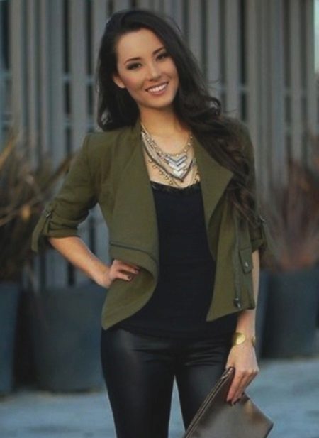 Pants. A short jacket perfectly complements a set of tight-fitting trousers and a blouse or top. If things are designed in the same color scheme, you can get a very stylish, strict outfit, perfect for an office dress code. A combination of a cropped jacket and trousers made of light, flowing fabric looks very impressive.