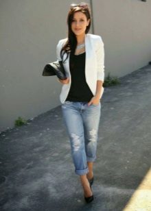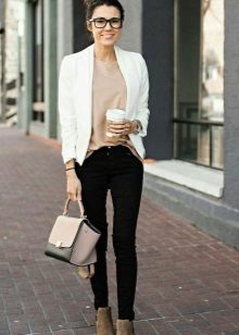 A white jacket is a basic element of a women's wardrobe. Any set of clothes, complemented by a snow-white jacket, looks very feminine and elegant.