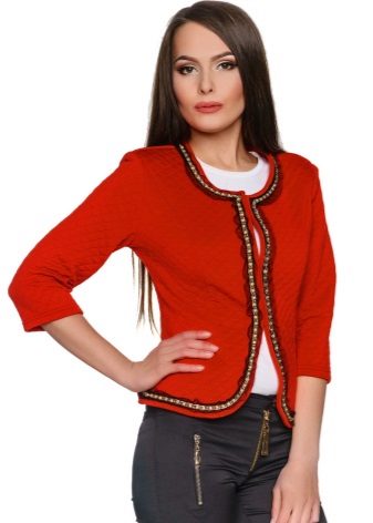 Most often it is sewn from dense fabric, due to which it keeps its shape. It can be denim, leather, tweed, suede and other natural and artificial materials. Demi-season models of short jackets can be made of thin wool on the lining. For hot summers, you can use lighter, "breathing" fabrics - linen and cotton.