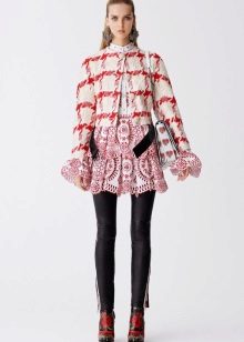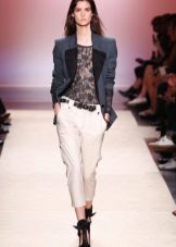 The fitted jackets are combined with shirts and elegant blouses, tops.