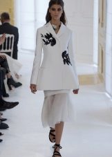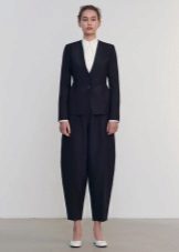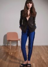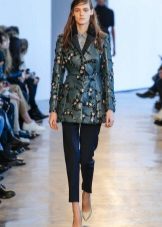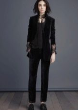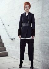 For an office style, the best is an elongated model of a fitted jacket or jacket with patch pockets in tandem with classic narrow trousers that do not have to match the color of the jacket.