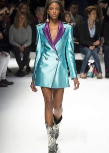 If you need to create an evening look, then the combination of a versatile colored blazer with a light cocktail dress in pastel colors will look very impressive and elegant. Round off the look with heeled sandals, matching the color scheme with the dress. As accessories, it would be better to choose metal jewelry, for example a long chain.