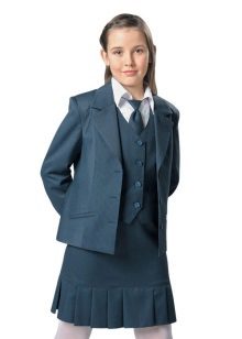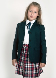 Green jackets look interesting, but not all girls face this color. Manufacturers of school uniforms usually choose dark shades of green for children's jackets, which look dark and disadvantageously set off the complexion.