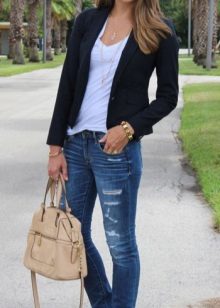 - A colored plain shirt under a jacket of the right shade - and the image is ready for the institute or office. A white shirt or T-shirt under a blue jacket - the image has become restrained and strict.