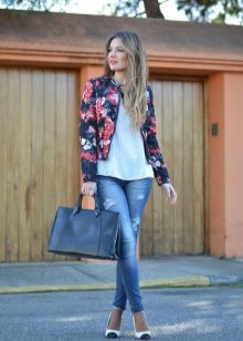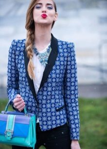 The most favorite print of a blue jacket is floral. Romantic, isn't it ?! In spring and summer - appropriate and elegant. But do not forget about the emphasis on the jacket and restraint in other elements of clothing.