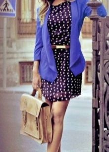 A bright, actual image will be created by a dress of a rich shade in an ensemble with a blue jacket of an elongated style.