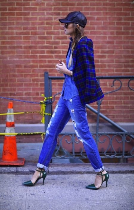Blue jacket. With this phrase, the image appears monotonous and strict. But do not limit yourself.