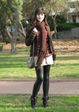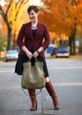 A very bright combination is a brown jacket and a dress in a deep blue floor. Such an ensemble can be worn on a romantic date - it will emphasize the beauty of the blue-eyed and fair-haired girl, making her image very gentle, but at the same time vivid and memorable.
