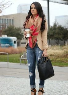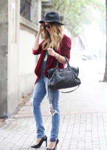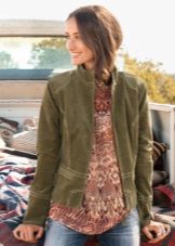 To create a free-style look A corduroy jacket can be included in an ensemble with jeans and a crop top. He will add courage and spontaneity to this stylish bow. When choosing a shade of a jacket, the color of the shoe should be taken into account - it should be 1-2 shades lighter, since the “heavy” texture of velveteen fabric will increase the amount of dark color in the image by several times. For example, if the shoes or boots are black, then the jacket will look great in gray, dark brown or indigo.