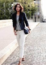 It is best to choose a classic jacket from black or dark gray fabric, as these colors are especially expressive shimmer against a light blouse and most accurately fit into a business image.