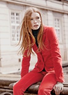 Classic cut jacket from velveteen will be very relevant in an office image for cool weather. The severity of style will add to your look a business look, and luxurious texture will demonstrate chic and excellent taste.