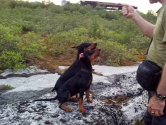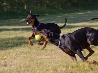Pinschers must be trained from early childhood. In order for a dog to coexist with a person without problems, it must be fully controlled by its breeder. This breed is distinguished by good intelligence, therefore, in the process of training, it demonstrates high rates. All classes should be held regularly, otherwise training results will not bring. Dogs of this breed must be introduced to other dogs and people from the moment of purchase, to ensure a full-fledged walk twice a day if the pet lives in the apartment. In addition to training, teams with pinscher need to play. In this case, you can combine training and playing with competitions, which will be useful for training and endurance of the animal.