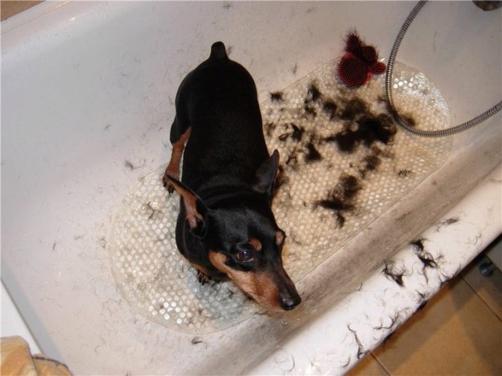 The pet is smooth-haired, therefore, in terms of grooming, it will not cause any problems. Water procedures are shown to pinchers only in case of emergency. Regular rubbing of wool with a damp cloth in most cases will be enough. It is recommended to comb the dog using not a brush, but a hard mitten. You can carry out these procedures every other day to avoid the appearance of a large number of villi on the floor if the pet is kept in the home.