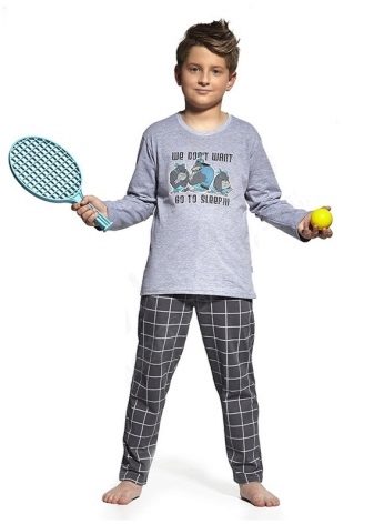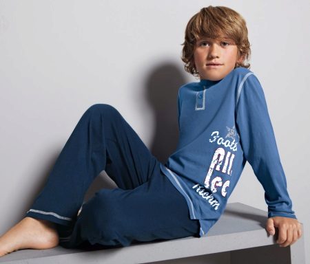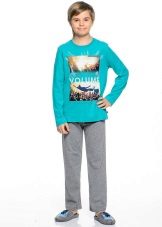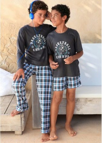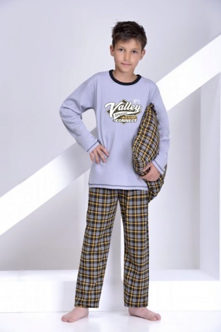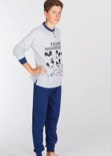 The traditional masculine combination of blue and blue, as well as a checkered print make teenage pajamas look like an adult, so she will undoubtedly like an adult boy. A knitwear and loose fit pajamas will provide freedom of movement and comfortable sleep.