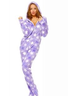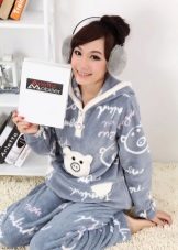 Today's trend is fleece pajamas. It can be presented in different configurations: a T-shirt or sweatshirt with shorts, breeches or pants, as well as in the form of overalls.
