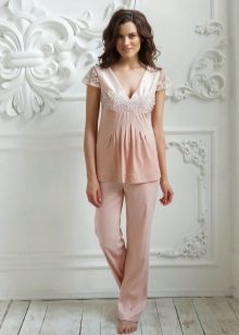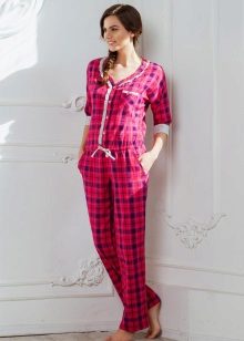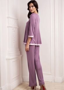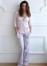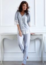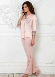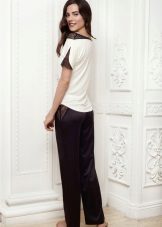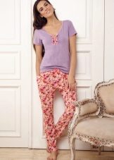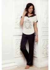 Top + pants. A more elegant and feminine option. The collection offers elegant and casual options in cotton, bamboo and other materials. Such pajamas are plain, decorated with lace, satin or decorated with original prints, for example, in the form of cartoon characters.