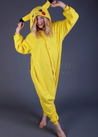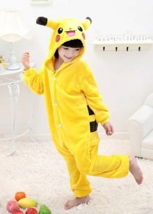 The most winning models of pajamas with Pikachu are kigurumi variants that make a person very similar to a large Pokemon.