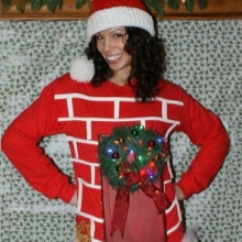 Stylish Christmas elf pajama cosplay from a set of a bright nightdress and trousers, decorated with a wide horizontal strip. Funny monophonic long cap with a large fluffy pompom on the end. An ideal set “with a joke” for long gatherings on the winter holidays with the whole family.