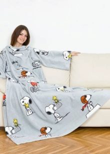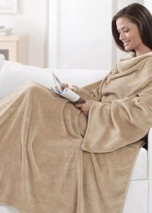 Do not be afraid of the awkwardness associated with the wide bottom of this model - a spacious hem when going to the kitchen or bathroom can be thrown over your shoulder in the manner of the ancient Roman toga. Pajamas-blankets are often equipped with a hood, which allows you to nap comfortably on the couch, wrapped in a blanket with your head.