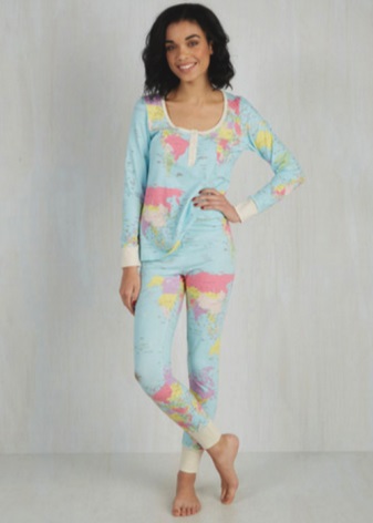 Cool prints add variety and enliven even the most minimalistic pajamas.A sleeping T-shirt or a warm jumpsuit with sleeves, decorated with funny drawings, cause an instant smile, and closed legs will be in comfort and warmth both during sleep, and when doing household chores or relaxing with friends.