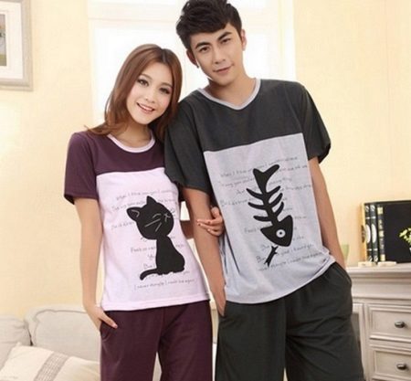 The pattern on such pajamas becomes complete only when the couple, dressed in them, hugs or simply lies nearby. At moments of such proximity, the puzzle depicted in pajamas converges. You can consider these pair of pajamas a home analogue of pendants consisting of two halves of the heart - cute and romantic, but it looks very cool!