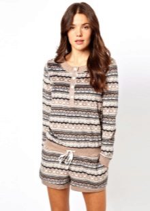 It differs from the previous variation in the shortened pants length - just below the knees, which makes them similar with breeches, and a short shirt: from the sleeve “three quarters” to the size of the t-shirt.
