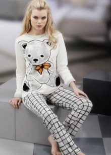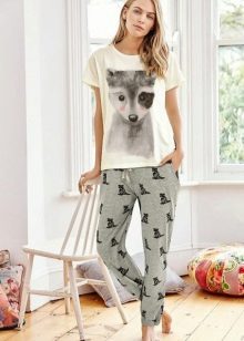 Geometric patterns, so popular in outerwear, are increasingly claiming their pajamas - today no one can be surprised by checkered pajamas or a striped version. Also in the trend are all kinds of prints. Many ladies love animals - and this is manifested in the design of their pajamas.
