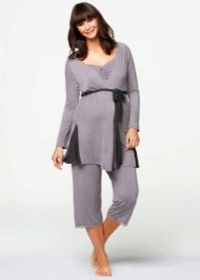 To such an ensemble for sleeping, it’s worth adding a cozy dressing gown that you can put on in the morning to drink a cup of tea or sit with a book. Pajamas tailored in the image of a kimono will become a real find for nursing mothers. The opening sections in its upper part are very convenient - in order to start feeding the baby, a second manipulation is enough. At the same time, pajamas are not required to be removed.