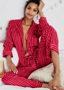 Pajamas at the intersection of home attire and office style once again prove that the imagination of designers is limitless. A gentle blouse of a milky hue with thin horizontal stripes that resonate with the color of the sleeping trousers creates a romantic and cozy mood.