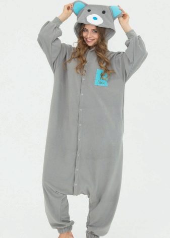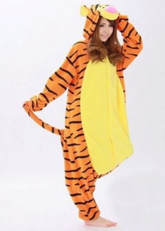 In addition to multi-heroes, real representatives of the animal world, both peace-loving and predatory: foxes, giraffes, cubs, raccoons and bunnies, often become a source of inspiration for kigurumi designers. Such pajamas-overalls in addition to the hood, stylized as the face of the animal, also receive decorative ears and even a tail of the corresponding shape.