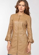 - Leather beige cloak. They are diverse in cut and general stylistic orientation. The models are presented in smooth leather, textured, with various embossments, spacious or adjacent. In any case, they look gorgeous and expensive. Suitable for formal occasions and under strict, elegant clothes.
