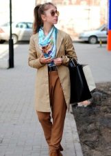- Accessories are important in the image with beige raincoats. A variety of scarves, gloves, hats will add to the outfit of colors and originality.