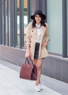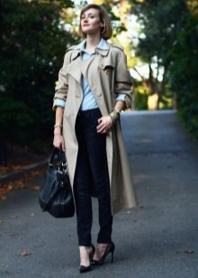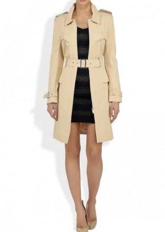 - Beige trench coat. Many do not see the difference between a classic coat and a trench coat. But she is. The trench coat has the following distinguishing features: