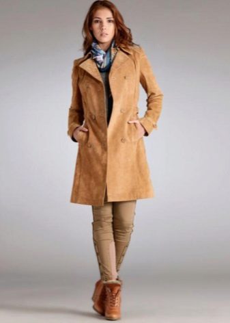- Beige suede cloak. Not as practical as the previous ones, but it has a cozy and luxurious appearance. Not for every day, only for special occasions.