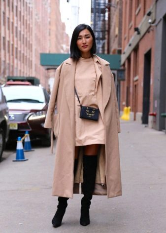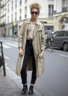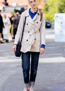A tight-fitting trench coat is a narrowed model that, contrary to the name, does not fit the figure, but only emphasizes the shape. The fitted trench coats can also be of different lengths: there are very short models that barely cover the upper part of the thigh, as well as elongated versions reaching the middle of the lower leg.
