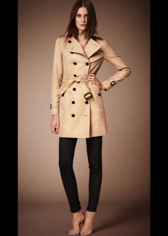 A modern trench coat is a model that matches the fashion trends of the last decade. She has a straight, clear silhouette, but does not look too strict, while maintaining the softness and femininity of forms. The modern Burberry cloak has three length options: classic, mid-thigh, and short.