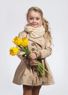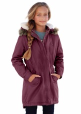 The most traditional length is to the hips or just below them. Such raincoats quite well retain heat and do not pass wind, besides they are comfortable. Shortened raincoats will be convenient for playing in the yards or other active entertainments, because they do not constrain movements. Of all of them, the warmest models will be below the knee. The choice depends only on the preferences of mom and daughter, as well as the purpose for which clothes are bought.
