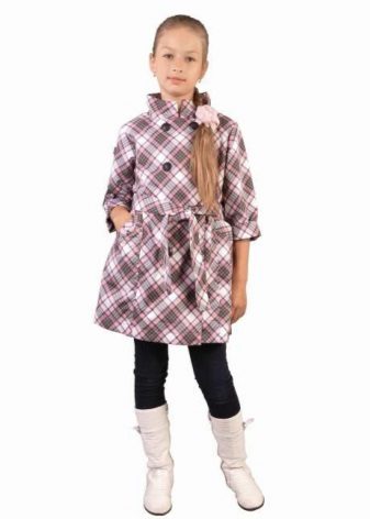 As for embellishments, then the designers' imagination is rich. On the cloaks, flower prints, patterns from different geometric shapes, images with cartoons or animals on the things of younger customers are found every now and then. A popular color scheme is a cage or pea.