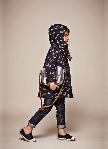 Little ladies can be no less business-like than their parents. So you should take note of a comfortable sports coat with a hood so that the wind does not inflate the ears. In good weather, you can safely afford sneakers, but fashion jeans and a handbag will complete the look.