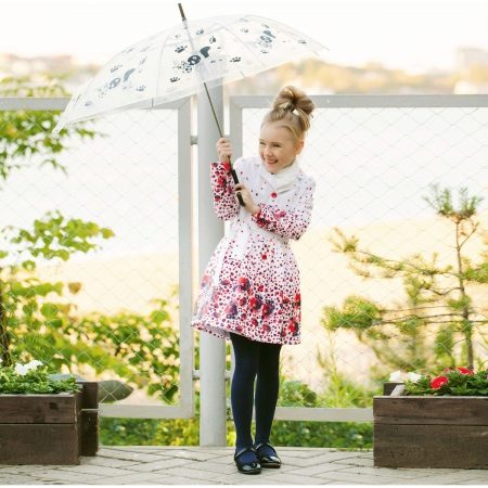 In addition to practical advantages, it is worth noting the popularity of raincoats, which means a wide range of models in many stores. Models can be very different from each other, so you can easily pick up clothes for any, even the most whimsical, taste. In addition, the cloak helps to keep clean and dry clothes under it or the hair of little fashionistas, who often find it important to keep the perfect hairstyle done by mom.