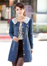 Denim raincoats with contrast overdue look very beautiful. Such models can be combined with feminine and elegant things.
