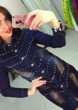 Some stylists believe that you should not completely put on denim clothes, it is better to combine different fabrics.But the variety of textures and colors of denim allows you to embody irresistible bows. For example, a dark blue cloak can be combined with blue jeans and a bright sweater.